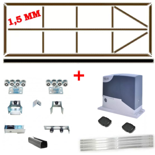 Комплект для самостоятельной сварки «Собери Сам» с автоматикой решит проблемы закупки дополнительных материалов для ворот, а также необходимость реза труб под строгие размеры. В обычных, бытовых условиях с помощью болгарки только очень опытные специалисты могут резать трубы, чтобы потом они плотно состыковывались и каркас не потерял своей геометрии. Ознакомиться с фурнитурой для откатных ворот, которая идет в комплекте, Вы можете по ссылке: Фурнитура для откатных ворот Furniteh